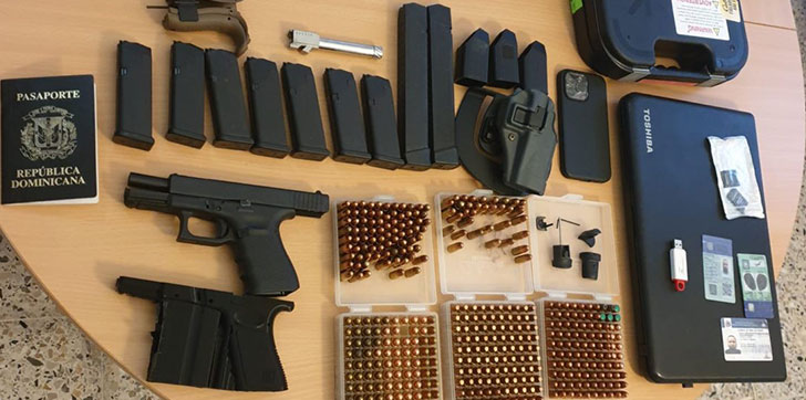 La ejecución del arresto se hizo tras un allanamiento autorizado por la Coordinación de los Juzgados de la Instrucción del Distrito Nacional, practicado en la residencia de Coronado Vidal, ubicada en el sector Arroyo Hondo, del Distrito Nacional, en donde se ocupó además, una arma de fuego sin documentos al día, 394 cápsulas de pistolas 9 milímetros y 380 milímetros, así  como cargadores adicionales de 15 cápsulas y 2 cargadores de 30 cápsulas, de la pistola marca Glock, además  de silenciadores y aparatos electrónicos.