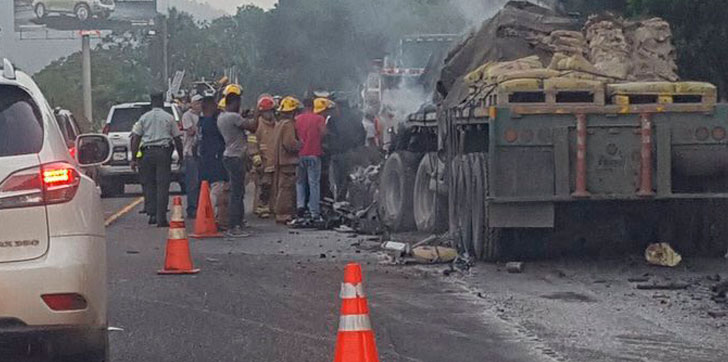 Muere calcinado conductor de camión se accidentó en autopista Duarte