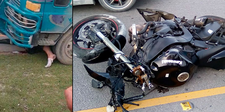 Según informaciones la víctima se desplazaba en un motor de alto cilindraje conocido como «Motores Ninja» color negro y fue embestido por un camión Daihatsu color azul quedando atrapado debajo del camión y falleciendo al instante.