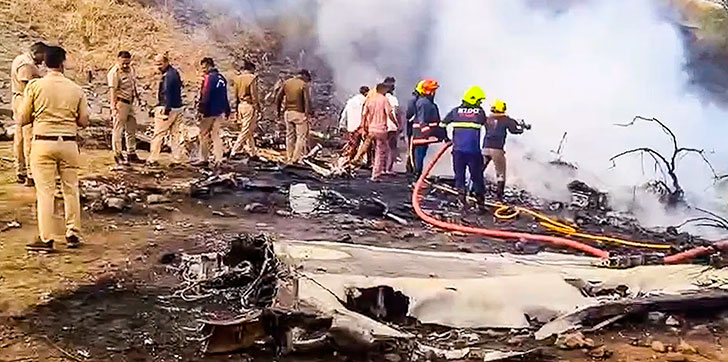 «Las cinco personas a bordo del avión chárter de Bombay a Baramati, que realizó un aterrizaje forzoso, han muerto», comunicó la Dirección General de Aviación Civil, que apuntó a la escasa visibilidad como posible causa del accidente.
