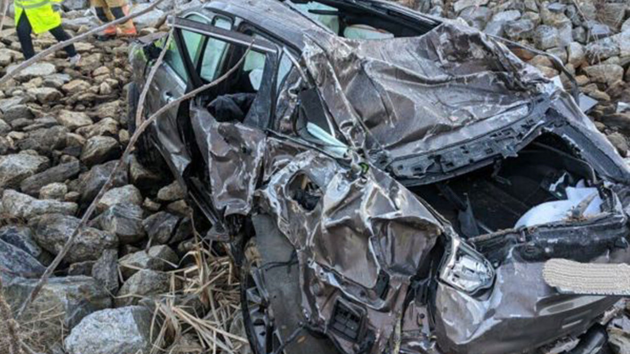 El Jeep Cherokee 2017 en el que viajaban viró a la derecha a través de la carretera antes de chocar contra una barandilla y atravesarla, según los investigadores. El automóvil rodó por un terraplén y se detuvo a unos 100 metros de la carretera.