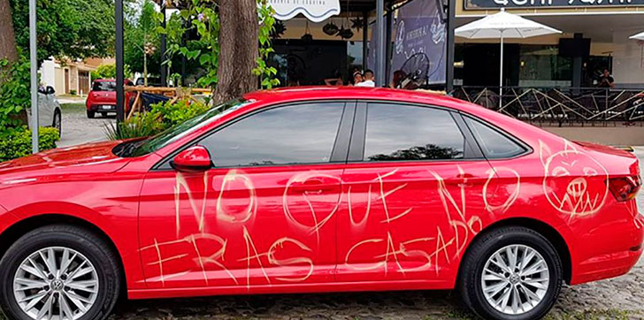 Mujer raya el auto de su pareja por ser infiel: “No que no eras casado”