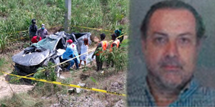 La víctima fue identificada como Jean Paul Philippe, de 56 años, residente en el Ensanche Evaristo Morales de Santo Domingo, quien conducía una camioneta negra marca Toyota Hilux, placa L395132, la cual se accidentó en el elevado de la intersección carretera Mella, que conduce al Municipio Consuelo.
