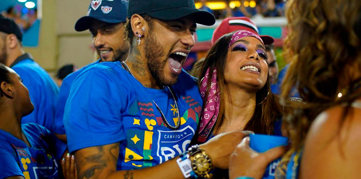 Con gorra oscura y uniformado con la camiseta azul que representa a su camarote del sambódromo de Río de Janeiro, el futbolista repartió abrazos y sonrisas en medio del tumulto y se dejó fotografiar por la cantante Anitta a pocos metros de su ex Marquezine, con la que acabó el año pasado.