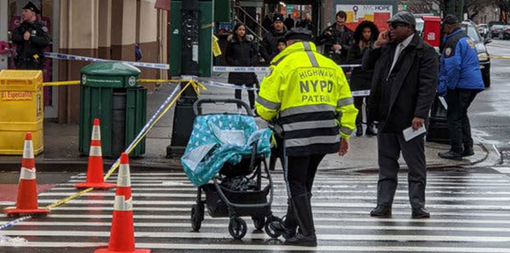 Imágenes desgarradoras de la escena muestran a la policía de Nueva York revisando el área, donde un cochecito permanecía vacío en medio de la calle.