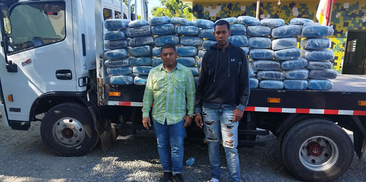 De igual modo, fueron apresados dos personas que ocupaban el camión; al chofer de nombre Iban Alcantara Montero, residente en el municipio Comendador de Elias Piña y a Santiago Tapia Bautista, que le acompañaba.