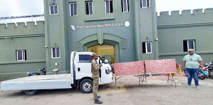 Montecristi.- Un camión donde era ocultado un contrabando de 70,400 cigarrillos fue detenido por miembros del Ejército de República Dominicana en el tramo carretero Villa Sinda, del Distrito Municipal Villa Elisa, provincia Montecristi.