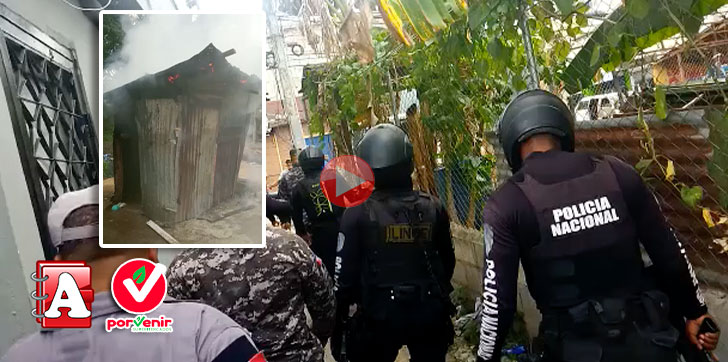 En las imágenes se puede apreciar el momento que oficiales queman el lugar y momentos mas tardes, varios sujetos tratan de sofocar las llamas.
