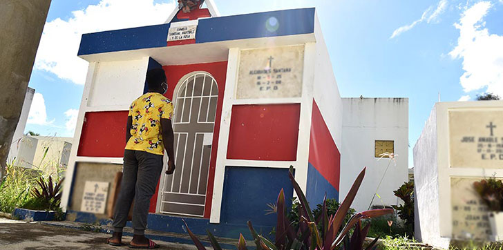 Filis -16 años- es de ascendencia haitiana y desde pequeño visitaba el cementerio con su madre que vendía empandas y jugos a quienes trabajan allí; ahora también se gana la vida en este lugar limpiando y pintando tumbas o cuidando alguna de personas que lo solicitan.