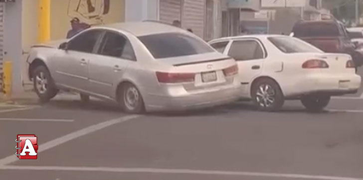 Los vehículos involucrados son un carro marca Hyundai modelo Sonata de color gris y otro marca Toyota modelo Corolla de color blanco.