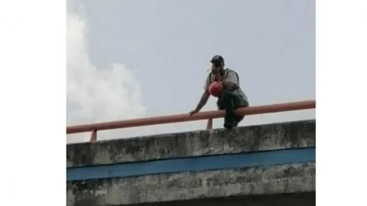 AGENDA56, SANTO DOMINGO.- Sentado en la barandilla del elevado que conecta la avenida Winston Churchill con John F. Kennedy, un hombre amenazó con lanzarse tras asegurar que un agente de la DIGESETT le quitó su motor, momento en que supuestamente, este se trasladaba a buscar un dinero para la compra de dos pintas de sangre para su hija.