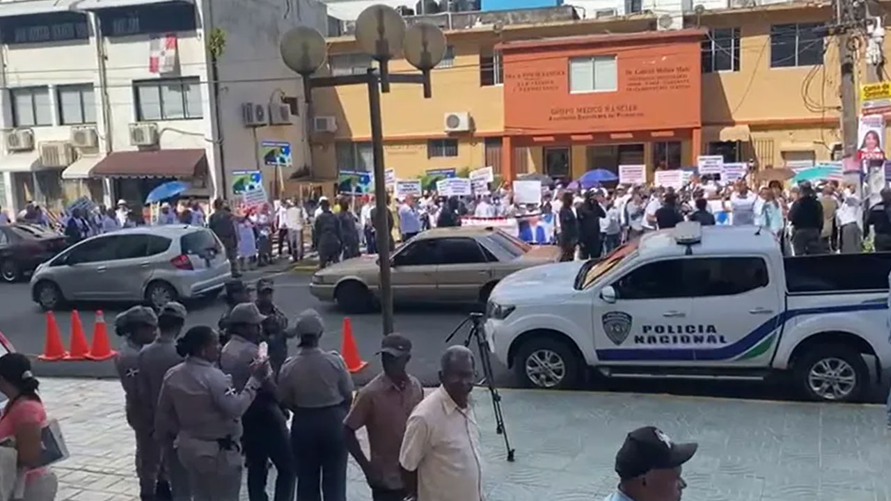 Personas a favor y en contra de Jhonny Portorreal se amontonan frente al Palacio de Justicia