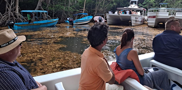 Una gran invasión de sargazo está afectado el turismo de excursión que se realiza en Los Haitices de esta provincia de Samaná.