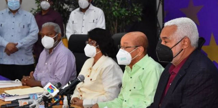 Acompañaron a Montás en la rueda de prensa al final del encuentro realizado en el Gran Salón Bienvenido Sandoval de la Casa Nacional del PLD, Cristina Lizardo, Melanio Paredes y Radhamés Camacho.