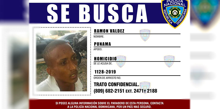 Se trata de Ramón Valdez (Punama) quien se busca bajo la orden de arresto #1128-2019, por ser señalado como uno de los responsables del asesinato cometido contra la menor de 15 años Carla Mariela Fernández Martínez, del motoconchista Miguel Ángel Acevedo Castillo y del chofer de vehículo pesados José Miguel Delanda.