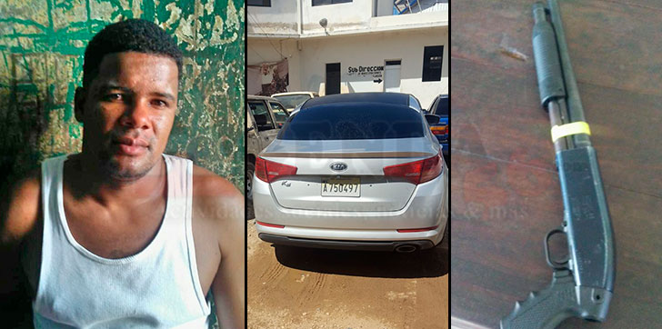 En el interior del vehículo se encontró una escopeta marca Maverick Mossberg, calibre 12 serial MU65593V, sin ningún tipo de documento y también fue conducido el carro marca KIA, de color Blanco, año 2011, placa A660795, chasis No. KNAGN415BBA009553, propiedad de Leury.