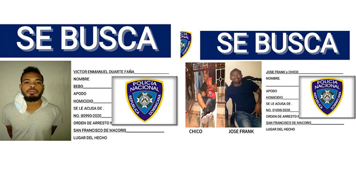 La Policía Nacional emitió una imagen de búsqueda de unos tales “Chico” y “Jose Frank”, quienes son acusados de ultimar a tiros a Eliezer Díaz Paulino; así como Victor Enmanuel Duarte Fañas alias Bebo, acusado de haber ultimado a Javy Yunior Prado.