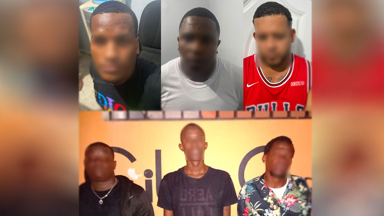Los detenidos fueron identificados como Vladimir Manzanillo (a) Breyli, de 30 años, a quien se le ocupó una pistola marca Glock, calibre 9 milímetros; Franklin Evangelista (a) Wáter, 28, que portaba una pistola TXG01131, y Rodelis Salas (a) Ronny El Flaco, 28, que tenía cargaba un revólver marca Smith & Wesson, con cuatro cápsulas disparadas.