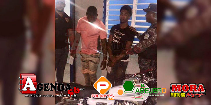 VILLA RIVA.- Una patrulla de la policía de Villa Riva, encabezada por el teniente coronel José Francisco de la Cruz Mercedes, arrestó en flagrante delito a dos jóvenes que habrían sustraído una motocicleta en Los Limones, distrito municipal El Pozo.