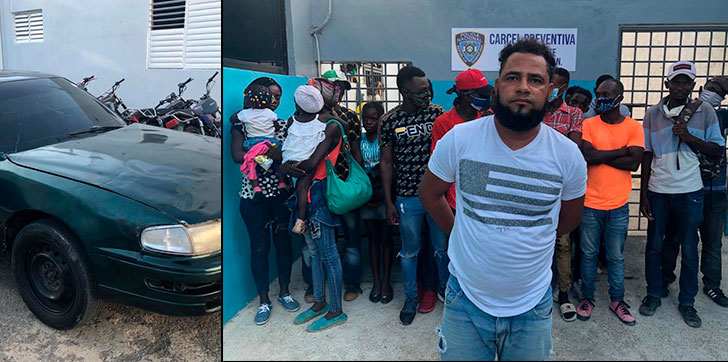 PN detiene persona transporta ilegalmente 17 nacionales haitianos en un carro; hay dos bebes con sus madres