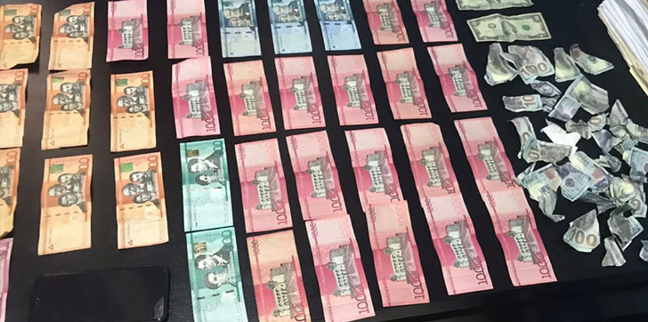 Además de los dólares y la presunta droga, los agentes policiales ocuparon más de 30 mil pesos en efectivo.