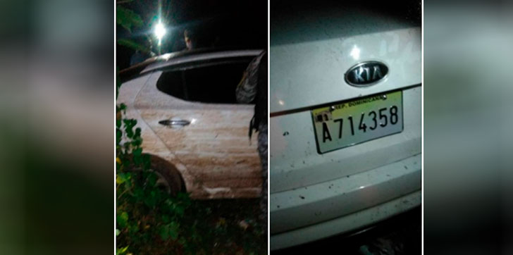 Se trata del carro marca Kia K5 color blanco placa A714358, el cual fue dejado abandonado después de una persecución policial en medio de unos matorrales próximo a los bateyes La Laura y Angelina.