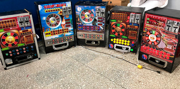 La policía informó que en medio de los operativos, fueron ocupadas cinco máquinas trabamonedas.