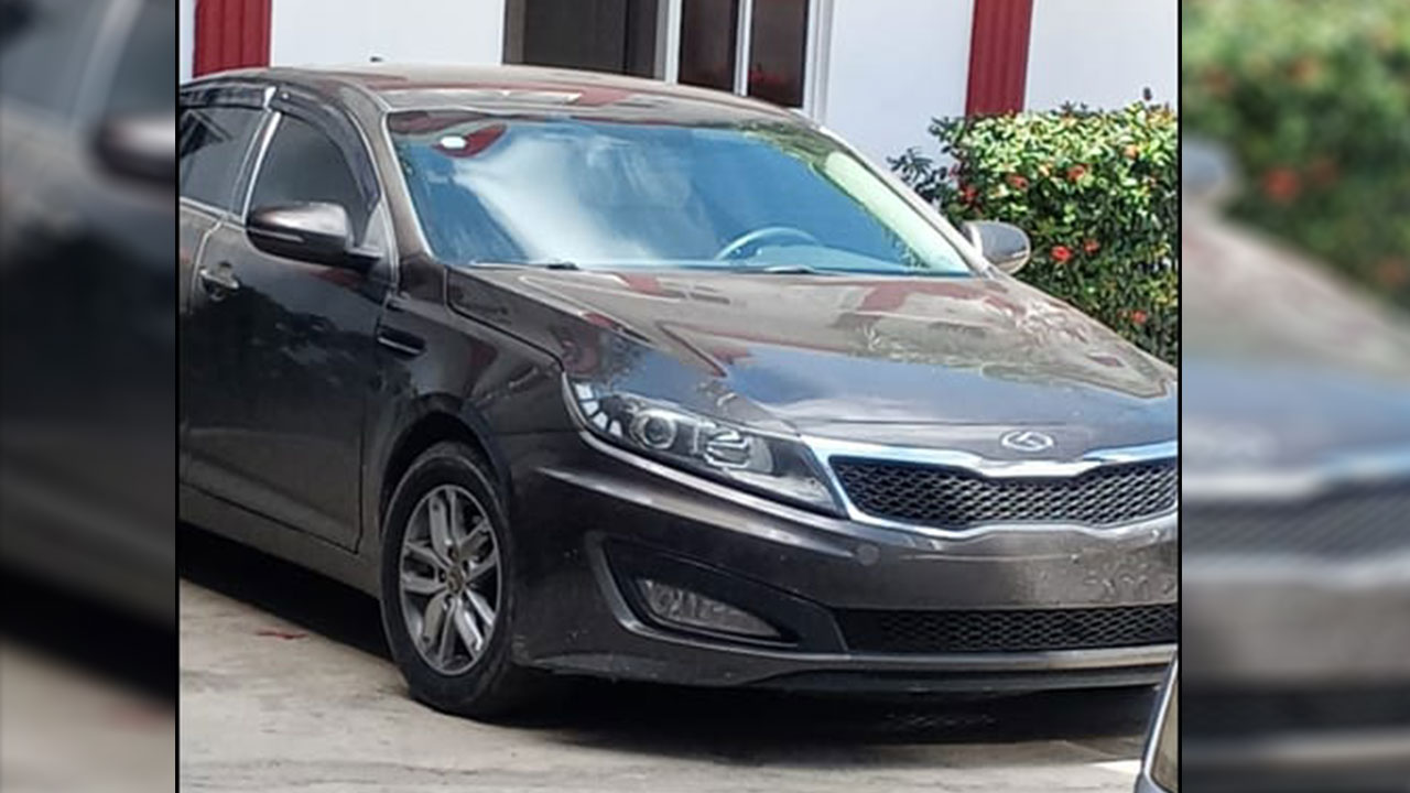 Se trata del vehículo marca Kia Optima, color marrón, placa A773469, propiedad de Edwardo Mateo Rosa, el cual localizado tras labor de seguimiento mediante el sistema de GPS.