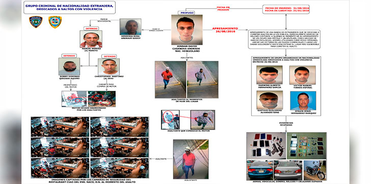 La institución del orden público indicó que están muy avanzadas las pesquisas en torno al caso, y determinó que los asaltantes pertenecen a la banda de extranjeros que había sido desmantelada el 26 de agosto del año 2016, apresando a cinco venezolanos a quienes les ocuparon dos armas de fuego y cinco de relojes marcas exclusivas.