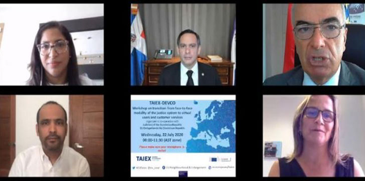 SANTO DOMINGO (RD).- Una representación del Consejo del Poder Judicial, encabezada por su presidente, magistrado Luis Henry Molina Peña, participó en un seminario web internacional sobre mejores prácticas de la virtualidad en el servicio de justicia, junto a funcionarios y técnicos de países miembros de la Unión Europea.