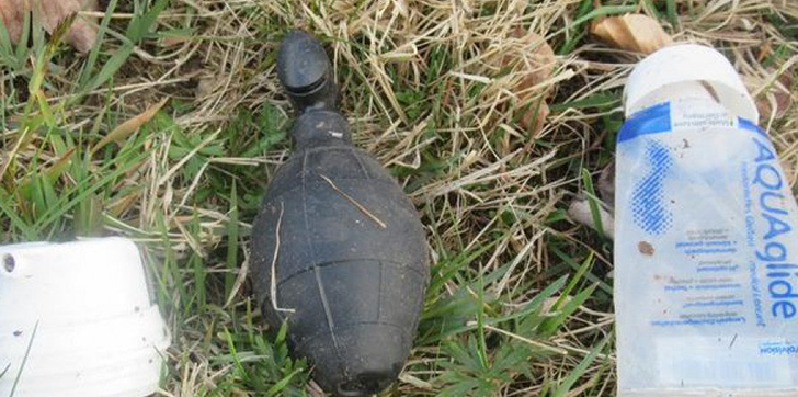 Pero cuando llegó un escuadrón de bombas e inspeccionó el contenido de la bolsa, determinaron que era una réplica de una granada de goma. Los condones y el lubricante en la bolsa ayudaron a informar la hipótesis sobre el uso previsto del dispositivo, dijo la policía a la agencia de noticias Alemana DPA.