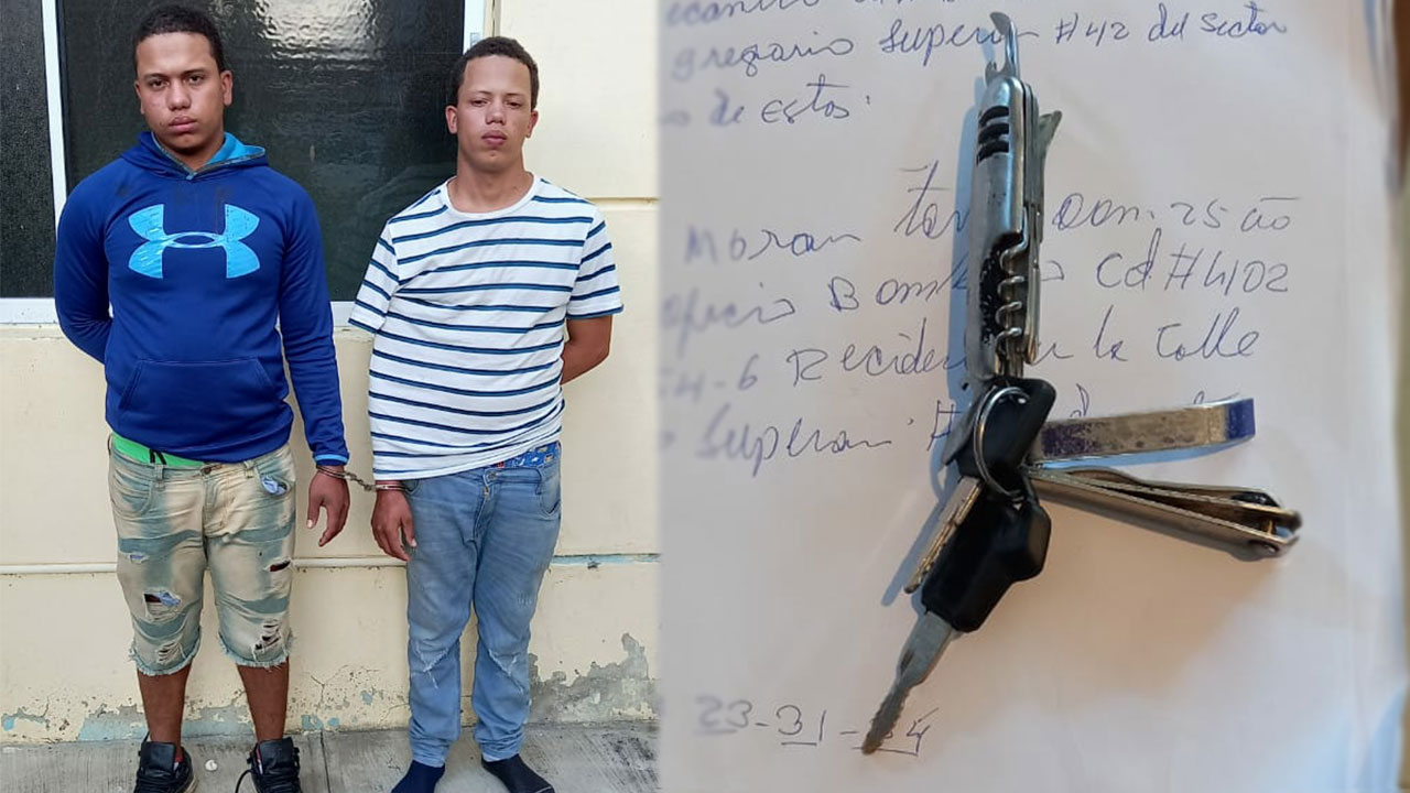 Los detenidos son Yeury Peralta y Yeuri Antonio Álvarez Familia, de 20 y 22 años, respectivamente, quienes mostraron una actitud violenta cuando una patrulla motorizada les solicitó identificaciones y papeles de la motocicleta en la que andaban.