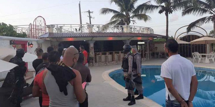 AGENDA56, SANTO DOMINGO.- La Policía Nacional apresó a varios ciudadanos y clausuró este fin de semana el negocio “Hotel & Piscina”, ubicado en Macao, provincia La Altagracia, porque supuestamente estaban violando el toque de queda, el distanciamiento social y otras medidas dispuestas por las autoridades para frenar el Covid-19.