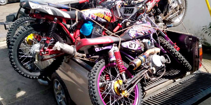 Las motocicletas modificadas modelo CG-200 sin numeración visible en el chasis, eran transportada en una camioneta marca Nissan color crema placa L-031441.