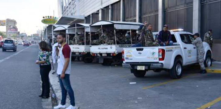 Desde esta mañana grupos de militares, portando armas largas y agentes policiales, han sido vistos en distintas avenidas del Distrito Nacional y la provincia Santo Domingo. Hace varios días el presidente de la Federación Nacional de Transporte la Nueva Opción (Fenatrano), Juan Hubieres, anunció que realizarían paros y movilizaciones en reclamo de que se eliminen alegadas mafias en la comercialización de combustibles y la importación de neumáticos.