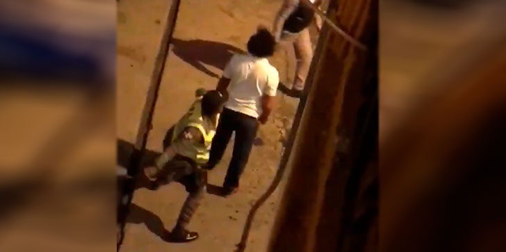 Según se puede observar en el audiovisual, los agentes, con pistolas en manos, propinan trompadas, empujones y patadas a un joven, tras este reclamarles  por qué le habían dado una galleta.