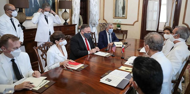 Según informó la embajada estadounidense en el país caribeño en un comunicado, durante su encuentro, Pompeo y Abinader trataron sobre «oportunidades para fortalecer los vínculos y la colaboración entre los Estados Unidos y la República Dominicana en las áreas de seguridad regional y crecimiento económico.»