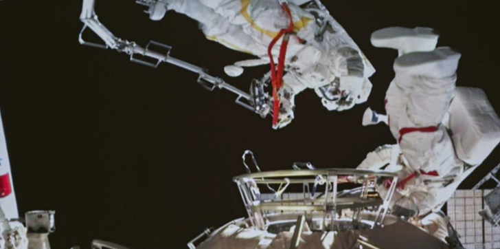 Wang y su colega Zhai Zhigang salieron el domingo del módulo principal de la estación y pasaron más de seis horas en el exterior para instalar equipamiento y hacer pruebas con el brazo robótico de la estación, según la agencia espacial china de misiones tripuladas.