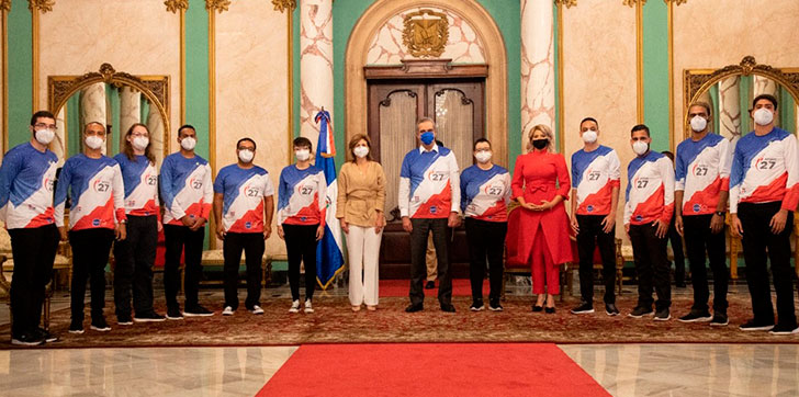 El acto tuvo lugar en el Salón de Embajadores del Palacio de Gobierno y estuvieron junto al jefe de Estado, la vicepresidenta de la República Raquel Peña y la ministra de la Juventud, Kimberly Taveras.