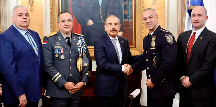 Presidente Medina recibe a oficial dominicano designado jefe de patrulleros de NYPD