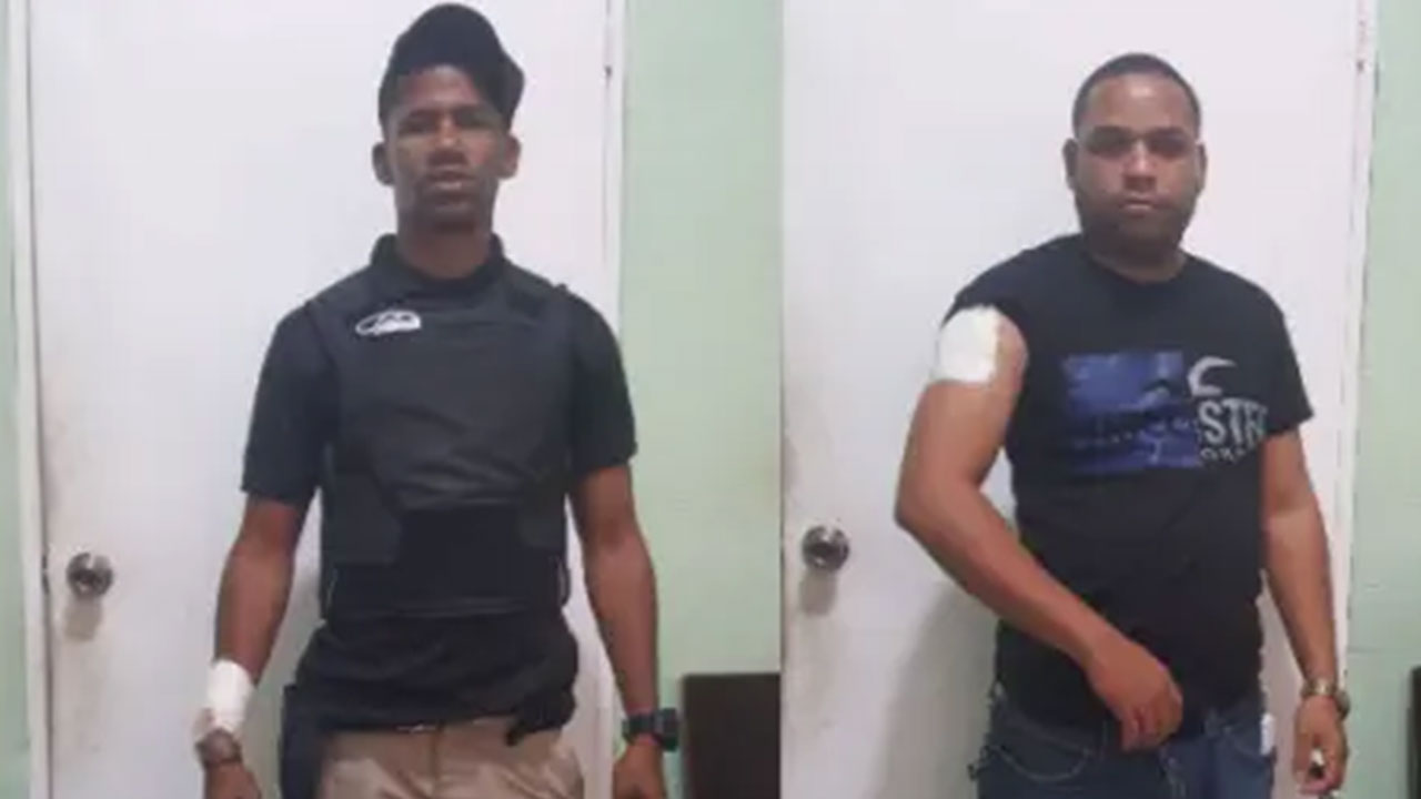 La Policía explicó que se trata de Carlos Alberto de León Díaz, (a) El Fade, de 40 años, quien recibe atenciones médicas en el Hospital Traumatológico Dr. Ney Arias Lora, como consecuencia de una herida de bala en el muslo izquierdo que sufrió luego de ocasionar heridas cortantes al capitán Pascual Ramírez Alcalá, el sargento mayor Juan Frank Figueroa Guzmán y el cabo Alexander Mercedes Then.