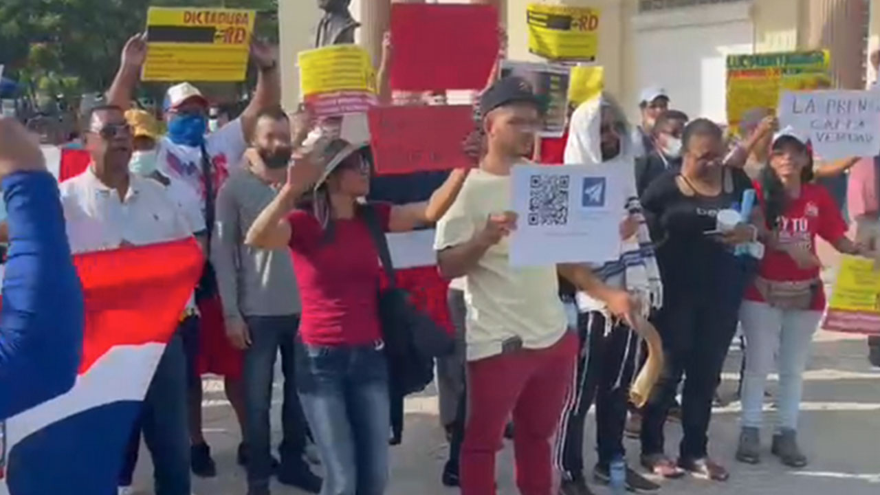 La protesta fue convocada por el dirigente político y pastor Carlos Peña, quien manifestó su oposición a las medidas dispuestas por el Ministerio de Salud Pública, y reclamó el derecho a la libertad que tienen todos los dominicanos de transitar libremente.