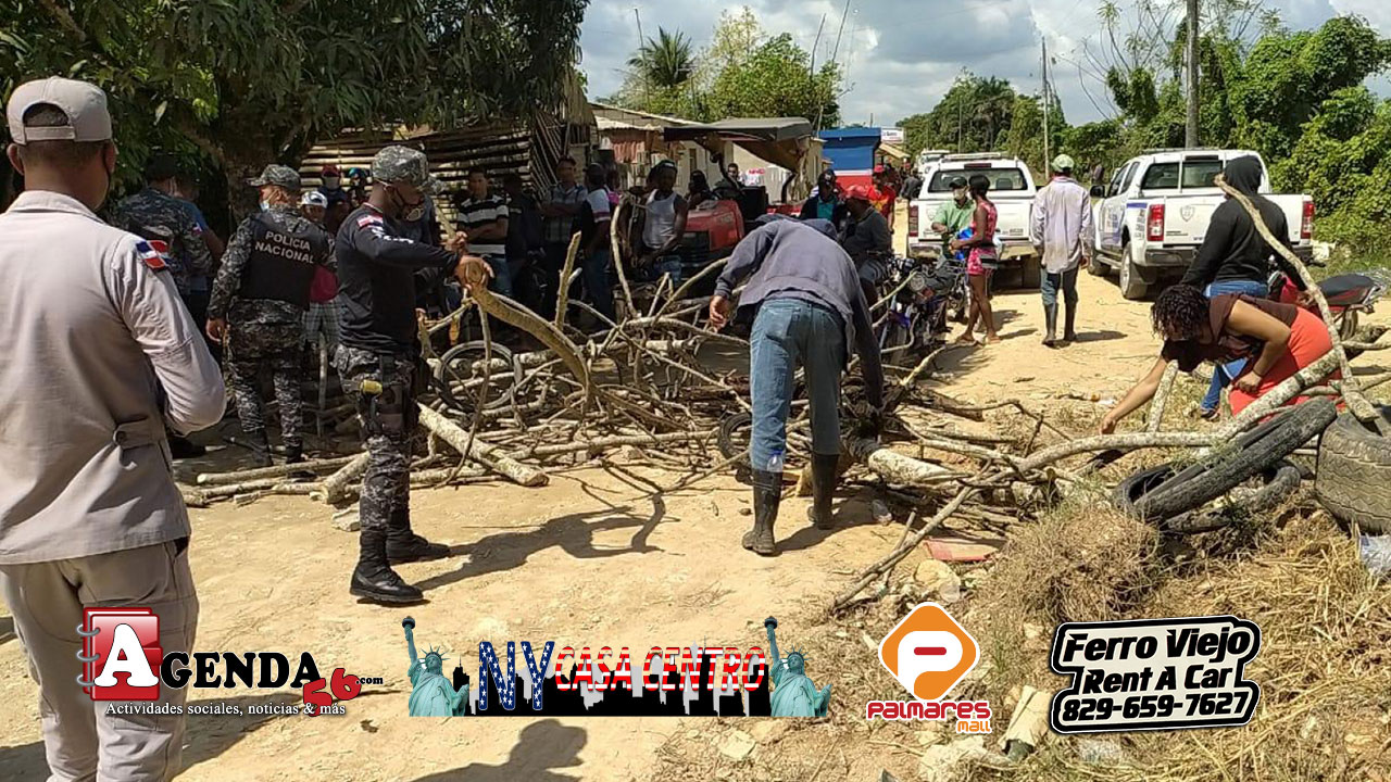 AGENDA56, DUARTE.- Lugareños de la comunidad Polvorín, en el municipio Villa Riva, cerraron el paso este lunes, como forma de protesta para que sea reparada la carretera.