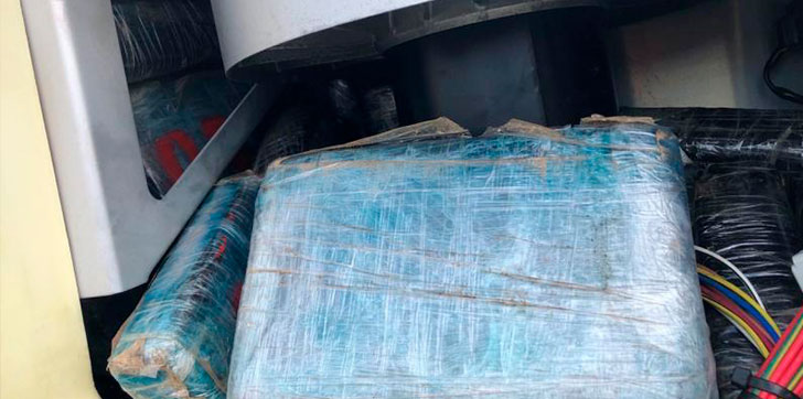 Dentro del contenedor, los agentes encontraron 52 objetos en forma de ladrillo con una sustancia en polvo blanca que dio positivo en las pruebas de campo a las propiedades de la cocaína