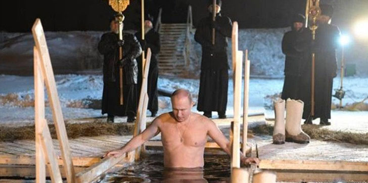 La celebración ha coincidido este año con una brusca bajada de temperatura, que ha alcanzado valores mínimos de 25 grados bajo cero, y en la región de Moscú, donde presuntamente se bañó Putin, el termómetro marcó 18 grados bajo cero.