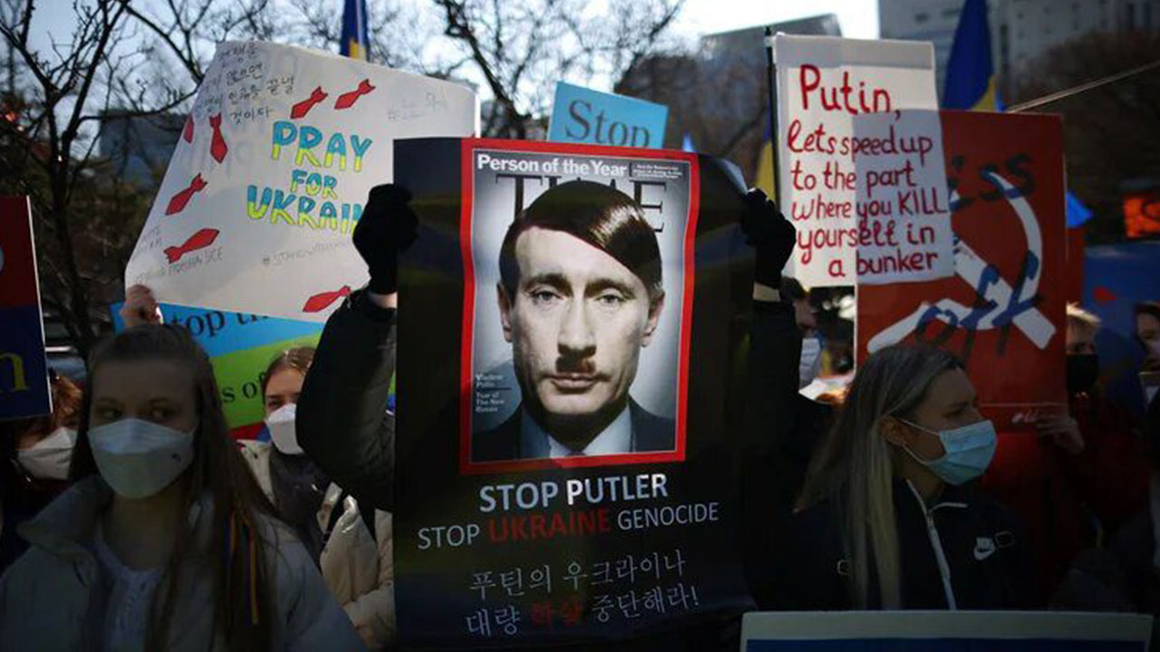 Las manifestaciones en apoyo a Kiev se multiplican no sólo en Europa y en los Estados Unidos, sino en las principales ciudades del planeta. Una de ellas tuvo lugar en Seúl, Corea del Sur, donde se vio un cartel original.