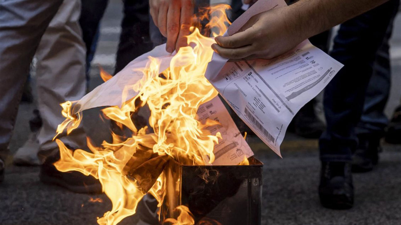 Queman facturas de la energía en Roma en protesta por los altos precios