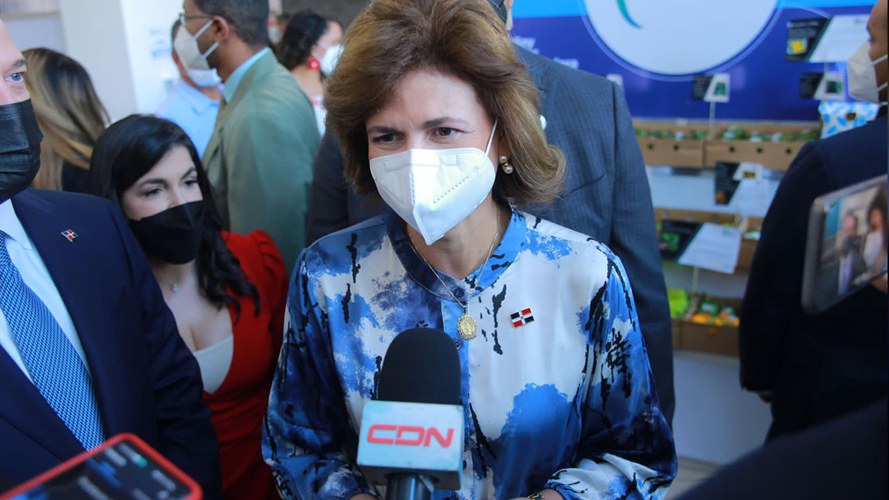 La funcionaria fue abordada por la prensa al finalizar el acto protocolar de la segunda edición “Mujeres en Exportación: hacia la resiliencia productiva” actividad que realiza ProDominicana.