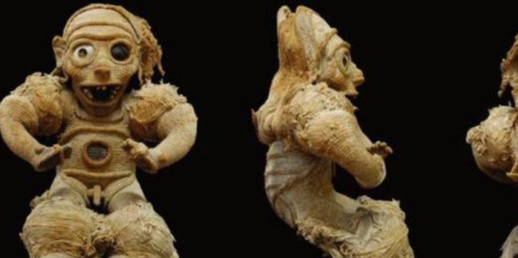 Luego de perdérsele la pista, la sala turinesa lo expuso en 1950 con la etiqueta “ídolo antropomorfo peruano [sic] hecho de fibra vegetal entrelazada, que contiene un cráneo y que muestra un ojo oscuro y otro claro”.