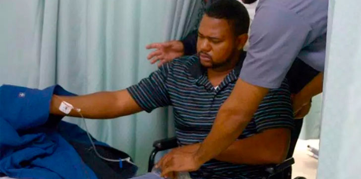 Luego de haber sido dejado en libertad y dado de alta del centro médico moderno regalado fue reapresado al Palacio de la Policía Nacional desde donde fue remitido hacia la Fiscalía del Distrito Nacional y examinado por el médico legista del Ministerio Público.